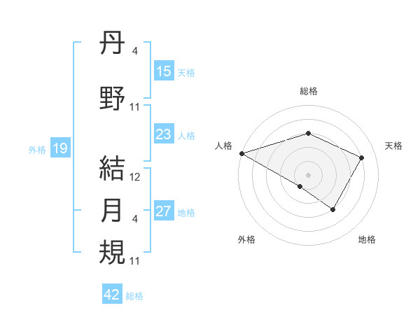 丹野 結月規さんを姓名の画数から五運を鑑定