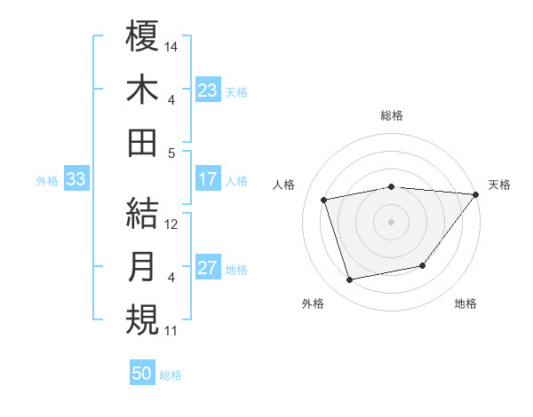 榎木田 結月規さんの天格は23画の5点!
