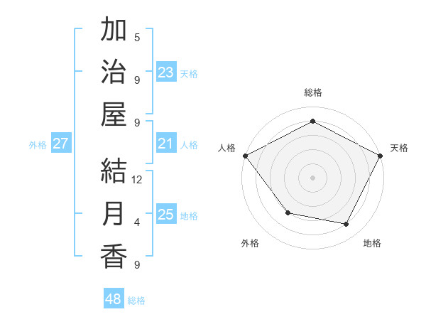 加治屋 結月香さんを姓名の画数から五運を鑑定