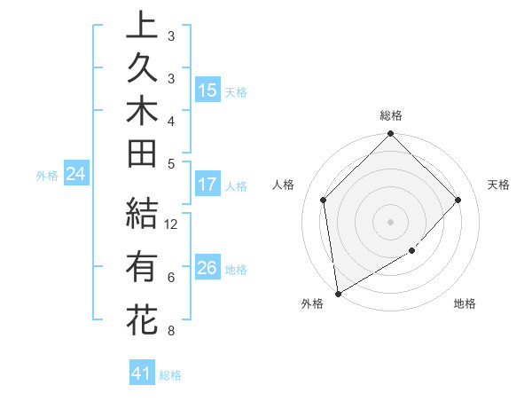 上久木田 結有花さんを姓名の画数から五運を鑑定