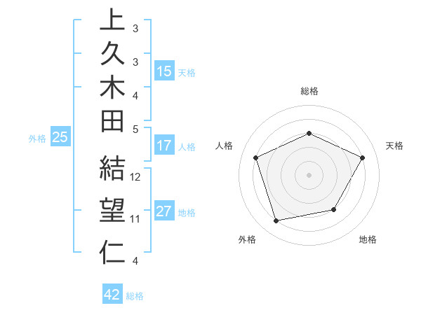 上久木田 結望仁さんを姓名の画数から五運を鑑定