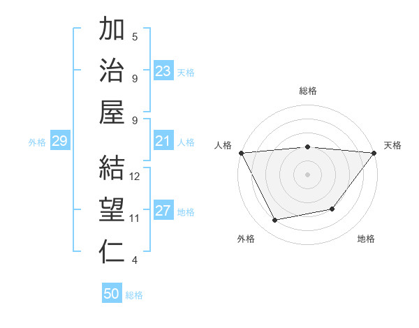 加治屋 結望仁さんを姓名の画数から五運を鑑定