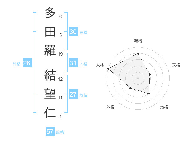 多田羅 結望仁さんを姓名の画数から五運を鑑定