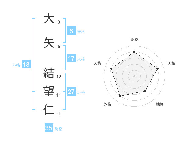大矢 結望仁さんを姓名の画数から五運を鑑定