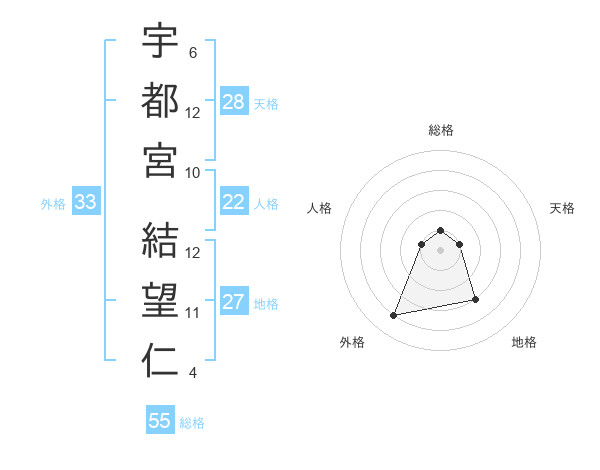 宇都宮 結望仁さんの外格は33画の4点!