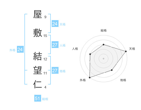 屋敷 結望仁さんを姓名の画数から五運を鑑定
