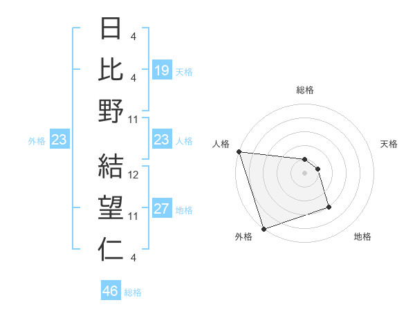 日比野 結望仁さんの外格は23画の5点!