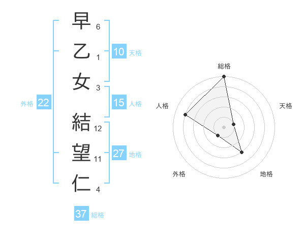 早乙女 結望仁さんを姓名の画数から五運を鑑定