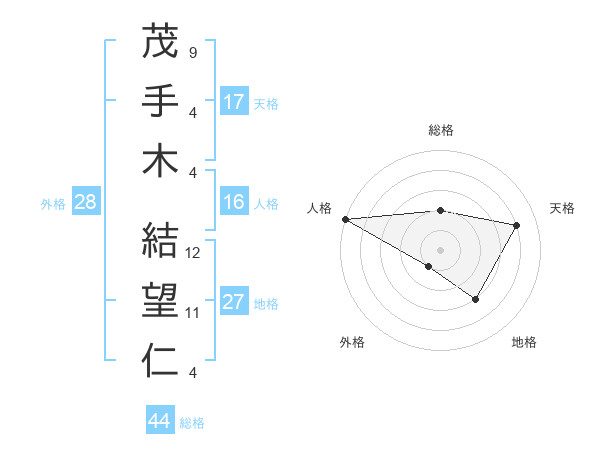 茂手木 結望仁さんの天格は17画の4点!