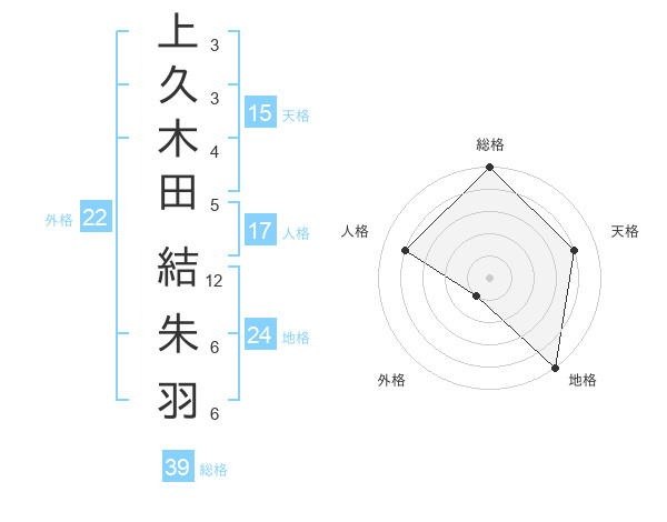 上久木田 結朱羽さんを姓名の画数から五運を鑑定