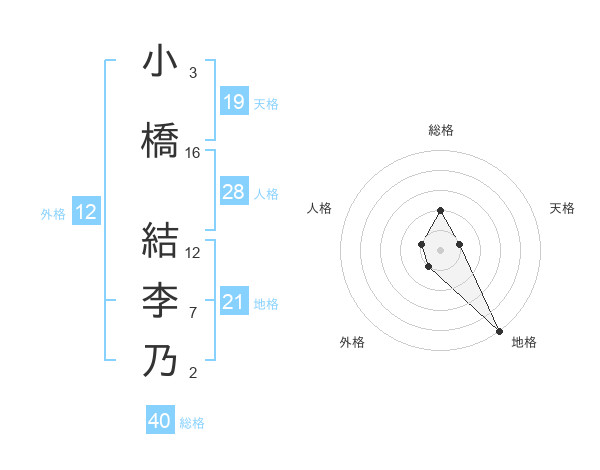 小橋 結李乃さんを姓名の画数から五運を鑑定
