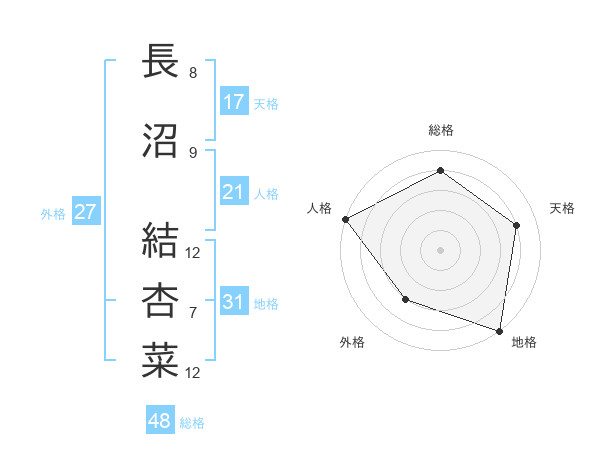 長沼 結杏菜さんを姓名の画数から五運を鑑定