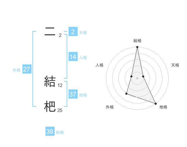 二 結杷さんの総格は39画の5点!