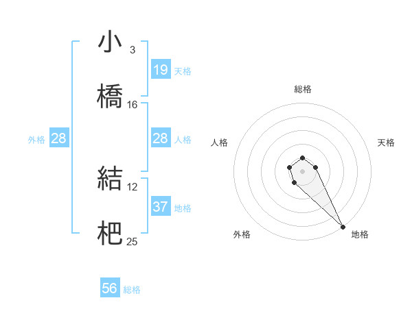 小橋 結杷さんの天格は19画の1点!