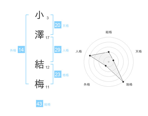 小澤 結梅さんを姓名の画数から五運を鑑定