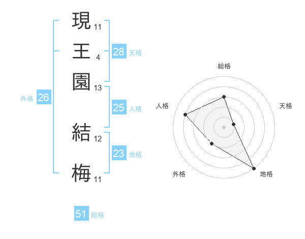 現王園 結梅さんの総格は51画の3点!