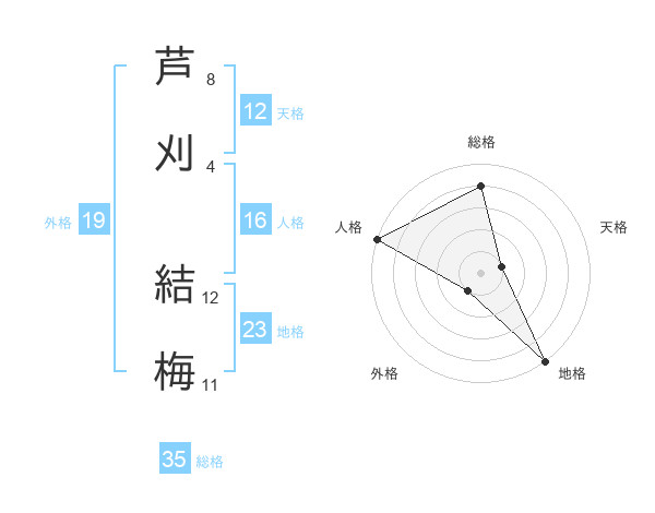 芦刈 結梅さんを姓名の画数から五運を鑑定