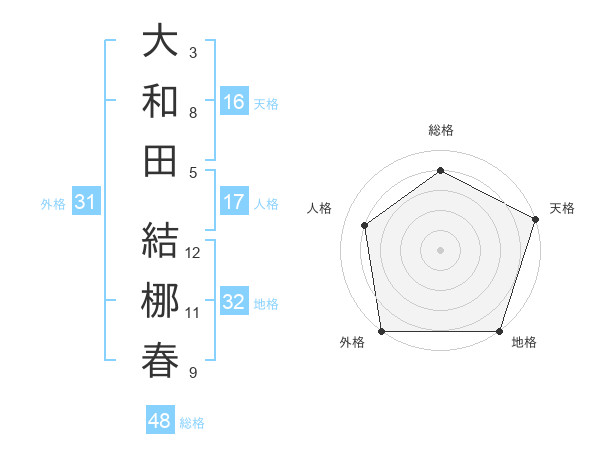 大和田 結梛春さんの外格は31画の5点!