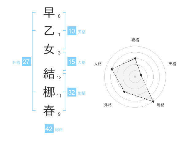早乙女 結梛春さんを姓名の画数から五運を鑑定