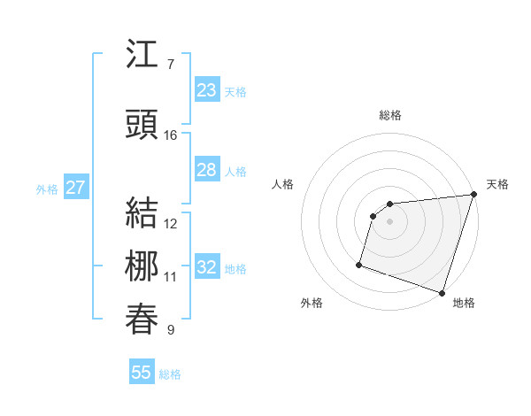 江頭 結梛春さんを姓名の画数から五運を鑑定