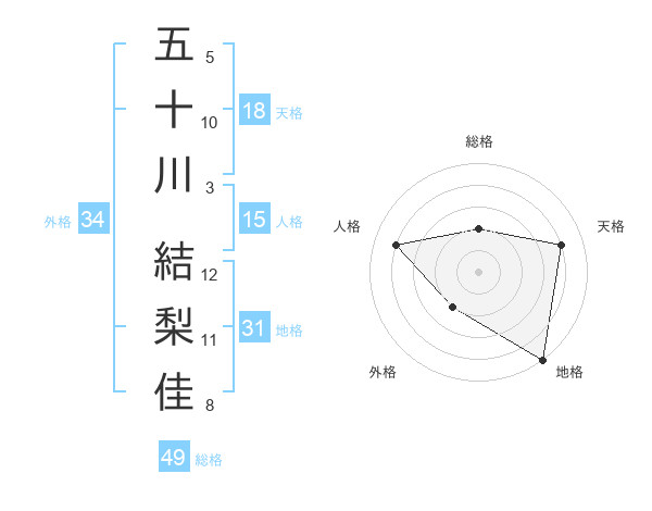 五十川 結梨佳さんを姓名の画数から五運を鑑定