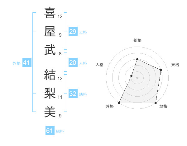 喜屋武 結梨美さんの外格は41画の5点!