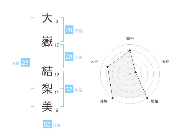 大嶽 結梨美さんを姓名の画数から五運を鑑定