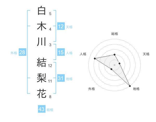 白木川 結梨花さんを姓名の画数から五運を鑑定