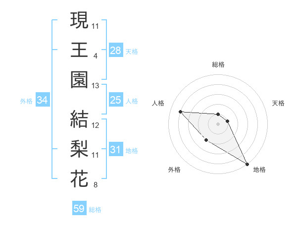 現王園 結梨花さんを姓名の画数から五運を鑑定