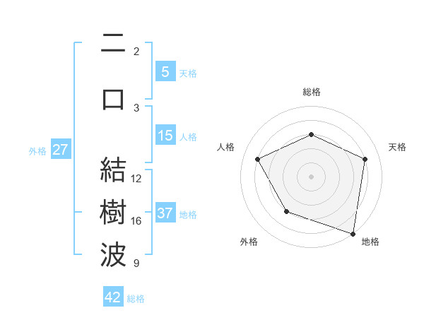 二口 結樹波さんの総格は42画の3点