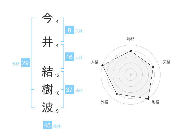 今井 結樹波さんの総格は45画の4点!
