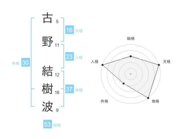 古野 結樹波さんを姓名の画数から五運を鑑定