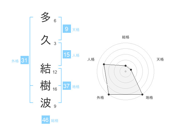 多久 結樹波さんの総格は46画の1点!