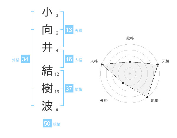 小向井 結樹波さんを姓名の画数から五運を鑑定