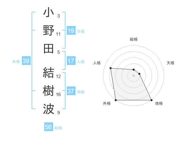 小野田 結樹波さんの外格は39画の5点!