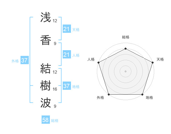 浅香 結樹波さんの外格は37画の5点