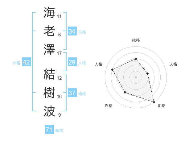 海老澤 結樹波さんの総格は71画の3点!