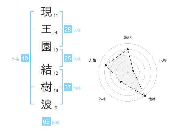 現王園 結樹波さんを姓名の画数から五運を鑑定