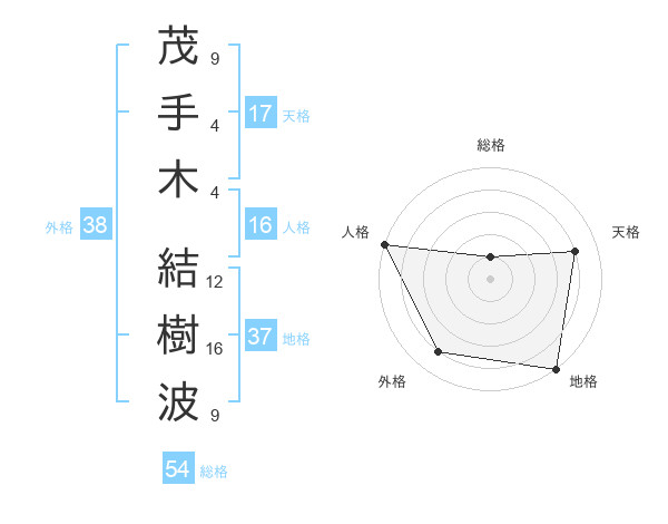 茂手木 結樹波さんを姓名の画数から五運を鑑定