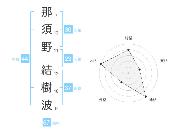 那須野 結樹波さんを姓名の画数から五運を鑑定