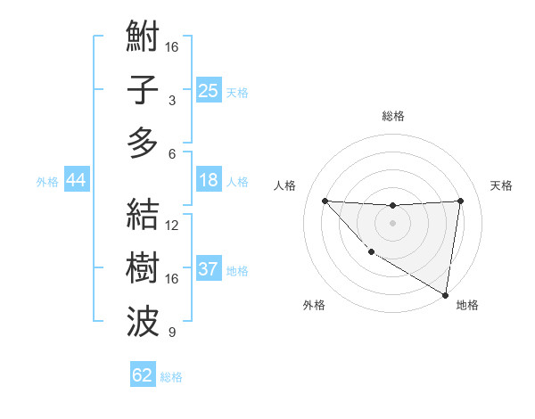 鮒子多 結樹波さんを姓名の画数から五運を鑑定
