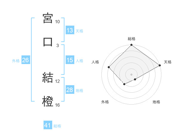 宮口 結橙さんの外格は26画の2点!