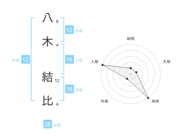 八木 結比さんの人格は16画の5点!