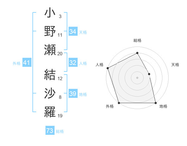 小野瀬 結沙羅さんを姓名の画数から五運を鑑定