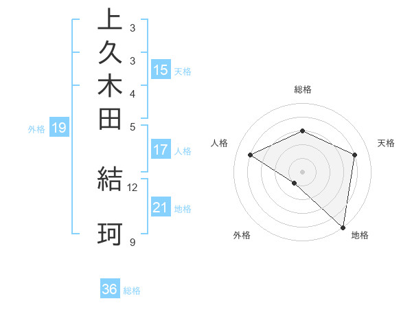 上久木田 結珂さんを姓名の画数から五運を鑑定