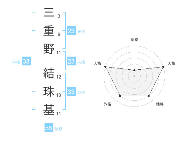 三重野 結珠基さんを姓名の画数から五運を鑑定