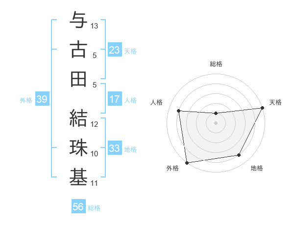 与古田 結珠基さんを姓名の画数から五運を鑑定