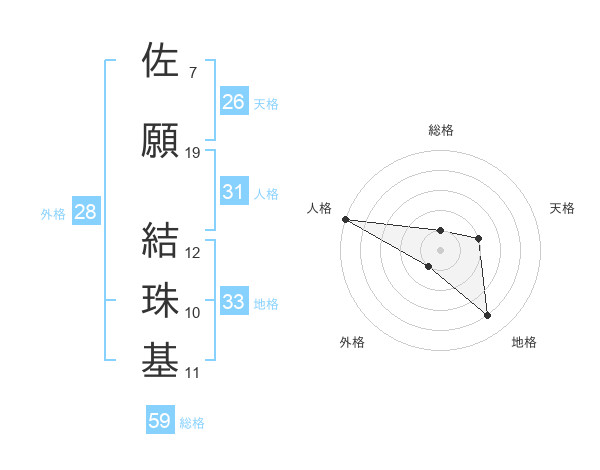 佐願 結珠基さんを姓名の画数から五運を鑑定