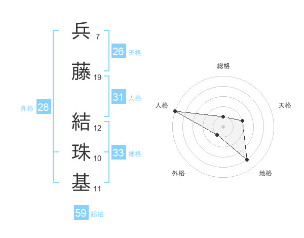 兵藤 結珠基さんを姓名の画数から五運を鑑定