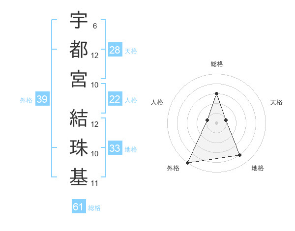 宇都宮 結珠基さんを姓名の画数から五運を鑑定